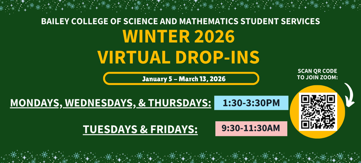 Bailey College of Science and Mathematics Student Services provides academic advising for Bailey College majors and pre-health advising to the entire university.